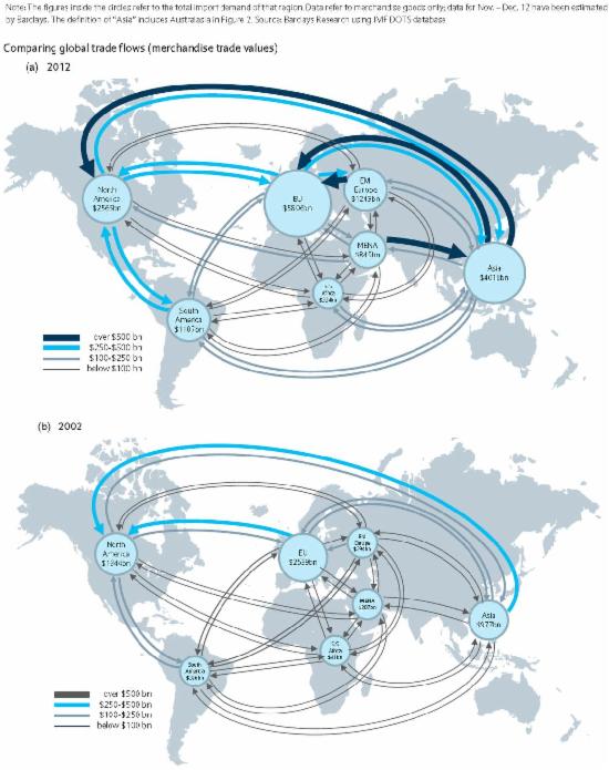 I will conclude my short introduction with some images which reflect global trade flows in 2002 compared to 2012. Since a picture is said to be worth a thousand words, I will leave them open for you to decide what they say. I am, however, prepared to use one word to describe them and that word is... opportunity.